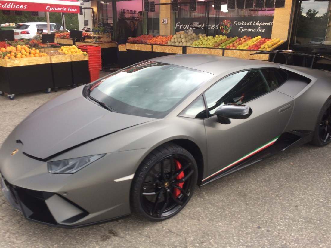 Last stop, Paul our favorite Boulangerie for baguette. The neighbor stopped by with his new 300k Lamborghini, oui, ouiπ