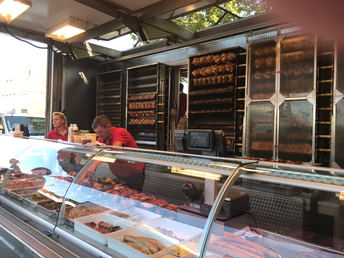 Pop out of the parking garage and low and behold it’s a market with beautiful food and rotisserie’s. We must be back on the continent๐Ÿ˜Ž๐Ÿ‘