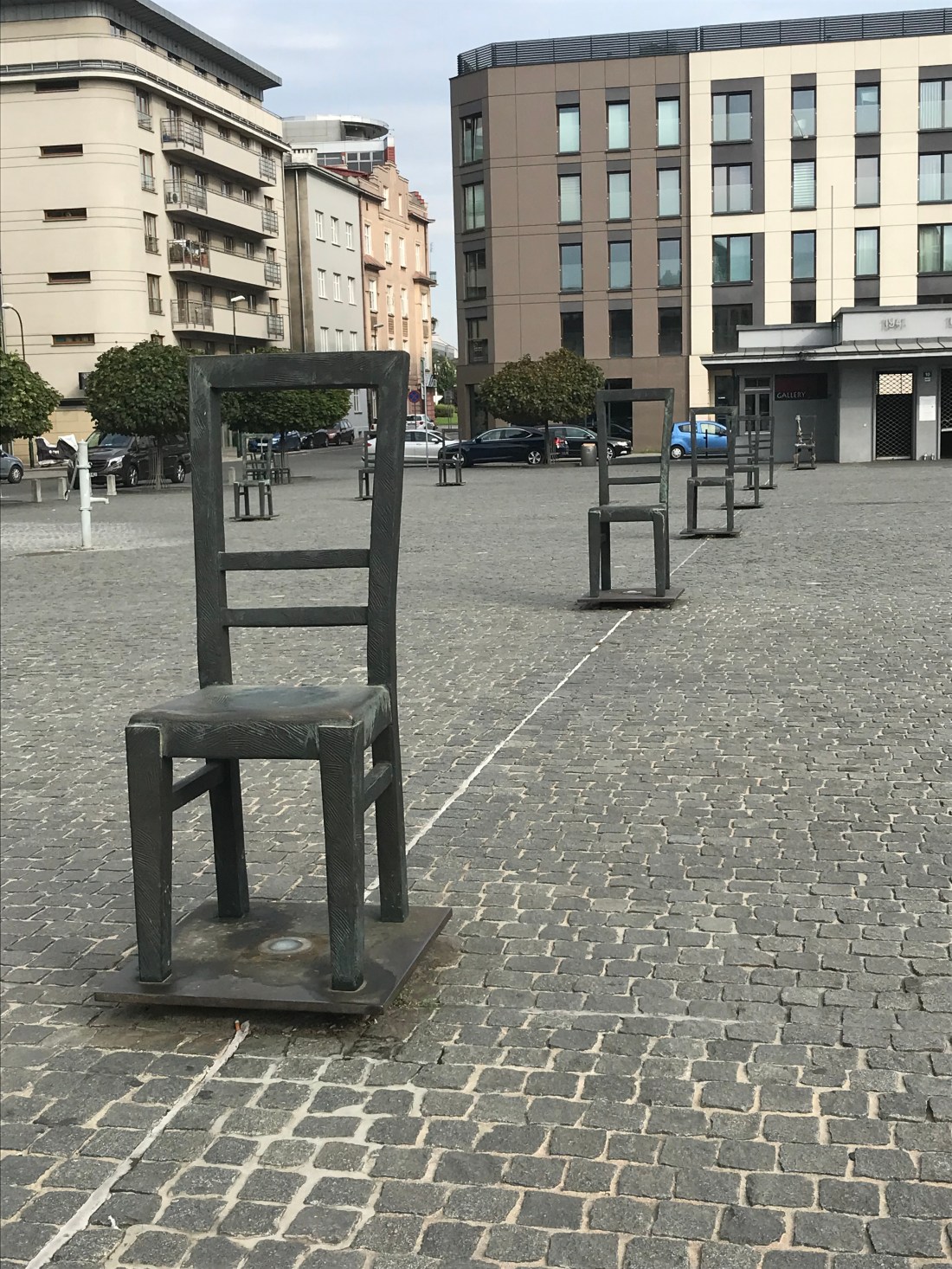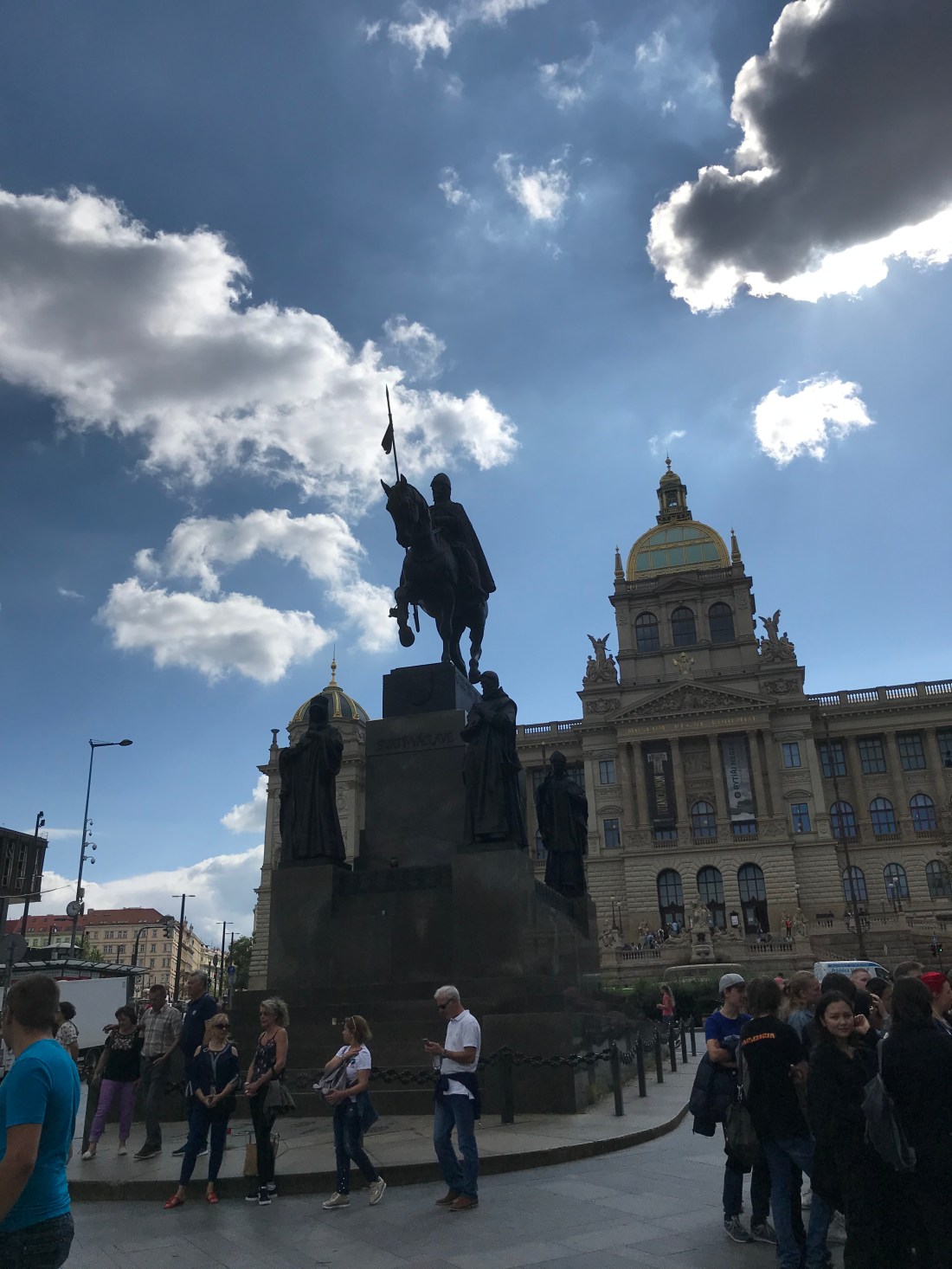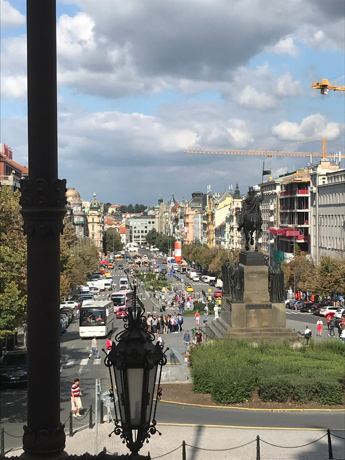We left beautiful Krakow with a planned six hour driving trip from Krakow to Prague, easy trip all freeway. However, about 150 km out of Prague we see traffic slowing down, not a good sight to see on the freeway. Construction the next 150 km and the freeway went down to one lane. Our six hour trip turns into an almost eight hour trip with heavy rain on top of that. We have decided that the same people who are in charge of making the Polish maps are in charge of road construction in Czech ๐Ÿ˜ณ We check into our Airbnb, which is in the suburbs, a one bedroom apartment in a high rise. Safe underground parking for the trusty Peugeot and right on the tram lines, perfect! The apartment also has two lovely balcony’s. Here’s the view from one. Bet you can guess who built that building๐Ÿง