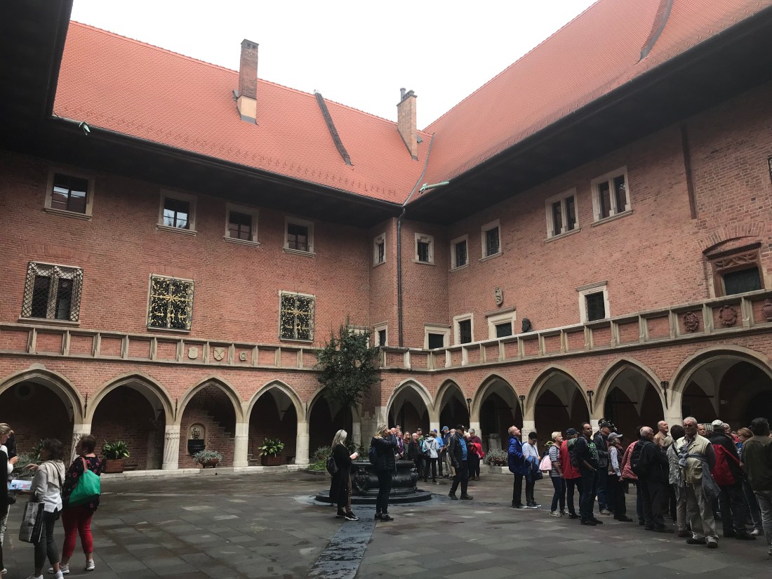 The city of Krakow is the second largest city in Poland. It has a little over one million residents. It’s world famous for its beauty and is a UNESCO World Heritage Site. It’s the home to several famous universities and home to Pope John Paul II. It’s quite a splendid city to visit, flat, easily walkable, and by European city standards, very affordable. Over the four days we stayed here, we walked 33 miles. Cindy’s a slavedriver. It’s a good thing we’re drinking delicious Polish beer and eating delicious Polish sausages to counterbalance that๐Ÿ‘๐Ÿ˜Ž Ok, let’s take a tour.